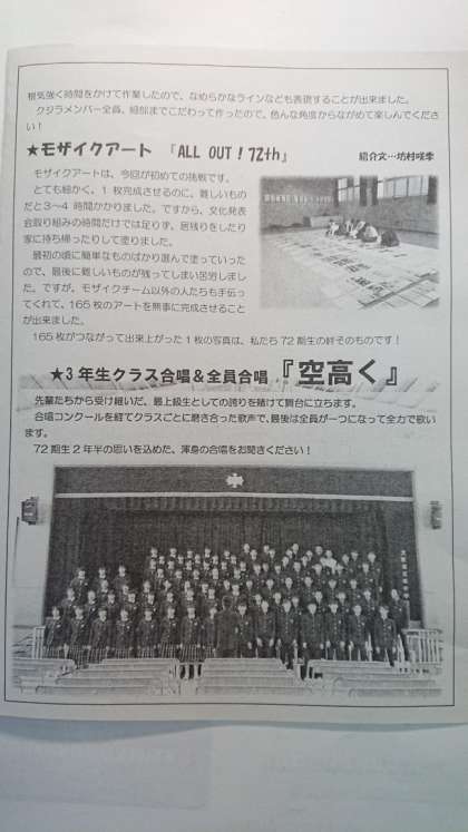本日付の3年生学年だよりは、「文化発表会」直前号です。