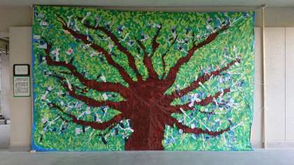 中庭に各学年の制作作品を展示しています。