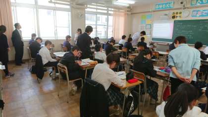 本日3時限目に、2年1組数学科研究授業を行いました。