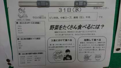 本日の献立は、ピリ辛丼、中華スープ、黄桃(缶)、牛乳です。