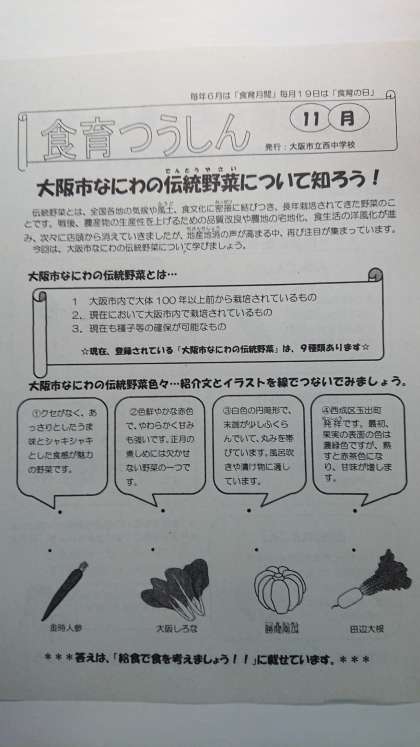 「食育つうしん」11月号を配付しています。