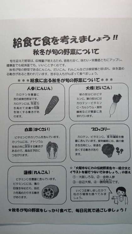 「給食」で「食」を考えましょう!