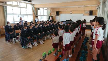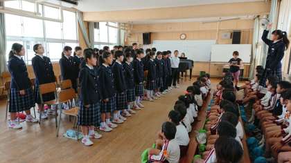 まず、1年2組のみなさんからのお歌のプレゼントです。
