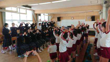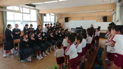 最後に、1年2組のみなさんと5歳児のみなさんが一緒に「大きな栗の木の下で」を歌いました。