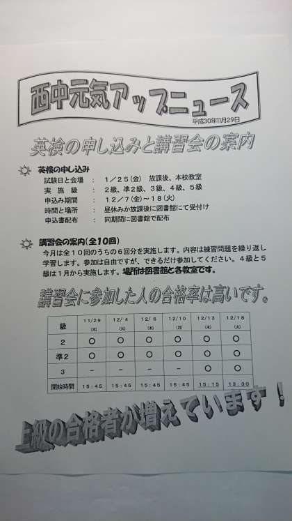 1月25日(金)に実施される「英検試験」の申し込み、「英検講習会」について書かれていますので、ぜひご確認ください。