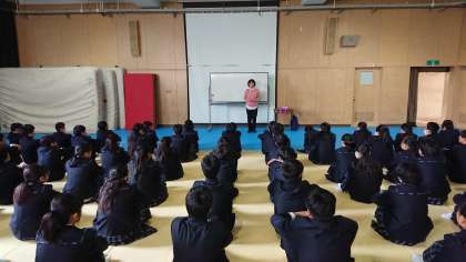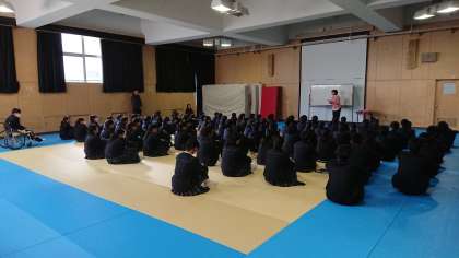本日6時限目、1年生は武道場で「食育講座」を行いました。