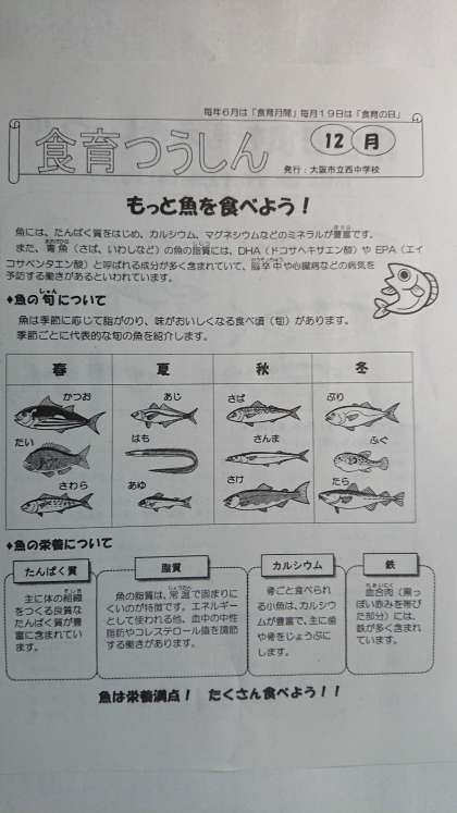 「食育つうしん」12月号を配付しています。