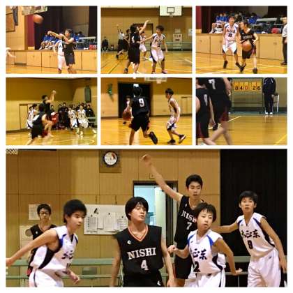 対戦相手は会場校の東中学校でした。開始直後に相手の3ポイントシュートが2連続で決まります。序盤から引き離されましたが、最後まで頑張りました。