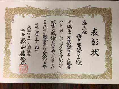 12月9日(日)、西スポーツセンターにおいて、「平成30年度 大阪市PTA親善バレーボール 西ブロック大会」が開催されました。
