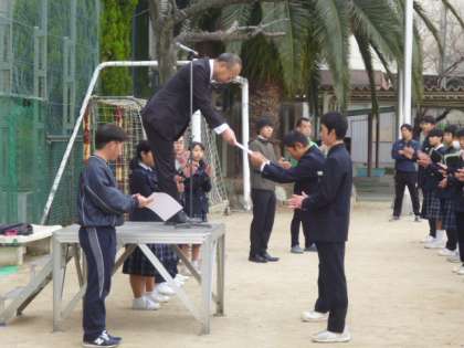 全校集会において、「平成30年度 大阪市ブロック選抜大会 準優勝」の賞状の伝達を行いました。