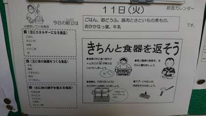 本日の献立は、卵豆腐、豚肉と里芋の煮物、おかか菜っ葉、ごはん、牛乳です。