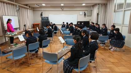 本日も、1年生の音楽の授業は、多目的室で「お琴」の授業です。