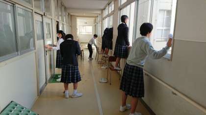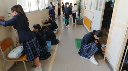 1,2時限目の学活、学年集会につづいて、3時限目は全学年とも「大清掃」です。