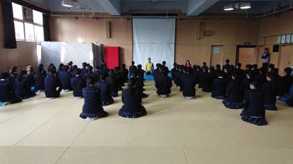武道場の凛とした空気のなか、学年集会が始まりました。