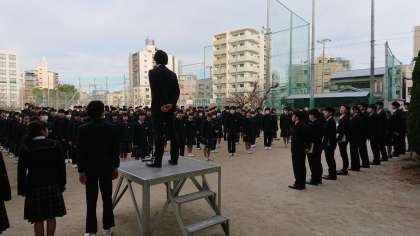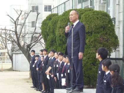 桜宮中学校は、生徒全員がしっかりとあいさつのできる素晴らしい学校です。きみたちも、負けないようにしっかりとあいさつをしてください。