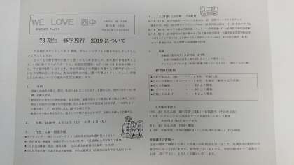 2年生学年だより「WE LOVE 西中」を配付しています。