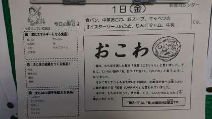 学校給食とは思えないほど栗が入ったおこわにテンションが上がります。