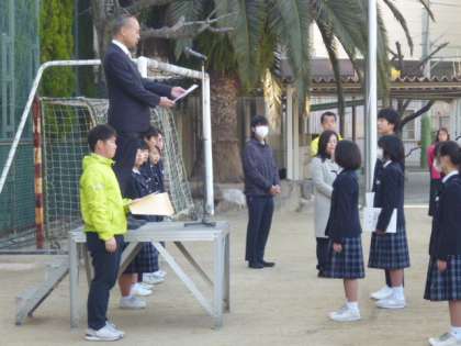 「読書感想画コンクール」入賞者の表彰状の伝達のつづきです。