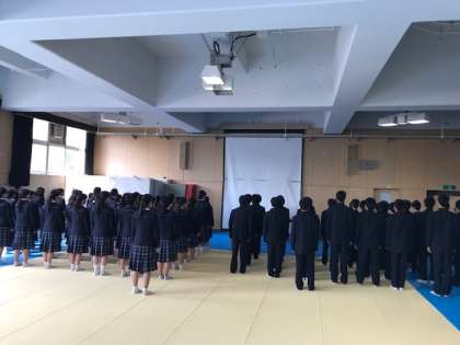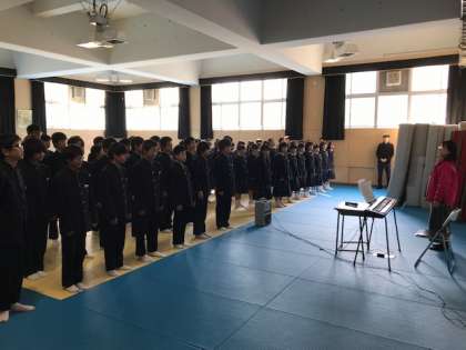 学年末テスト最終日、テストも終わり1年生は全員武道場へ。