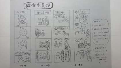 裏面には、給食委員のみなさんが描いてくれた4コマ漫画が載っています。