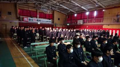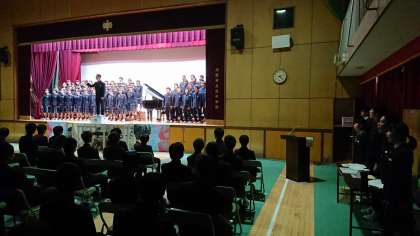 3年生の先輩方への「呼びかけ」につづいて、「空も飛べるはず」の在校生全員合唱。