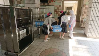 3年生がもう給食がないので、3年生の配膳場所が2年生の配膳場所になりました。