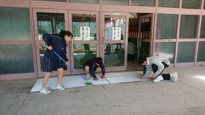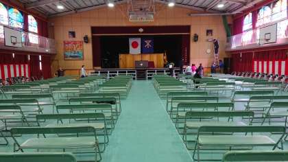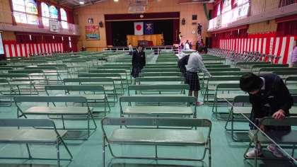 卒業していく3年生の先輩に対する思いを込めて、みんな一生懸命に式場づくりをしてくれています。