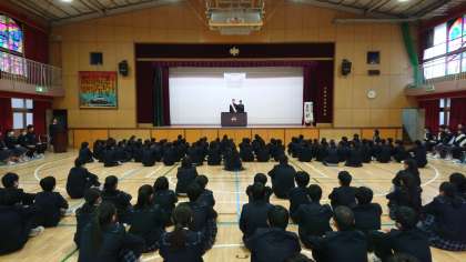 3月19日(火)1時限目 「生徒会役員候補者立会演説会」校長あいさつ