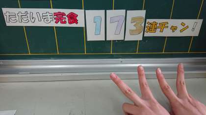 1年1組は、1年間ずっと完食記録を更新し続け、ついに「173連チャン!」です。