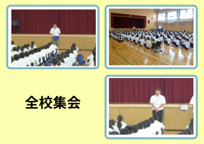 また、校長先生より今週行う3年生のチャレンジテスト、2年生の職場体験についてのお話がありました。