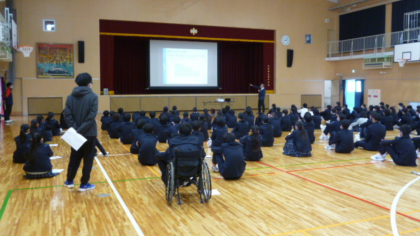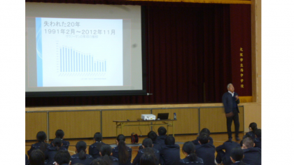 6限、1年生と2年生でヒューマンキャンパスのぞみ高等学校の川島先生にいらしていただき、「働くことと幸せ」について考える授業を行いました。