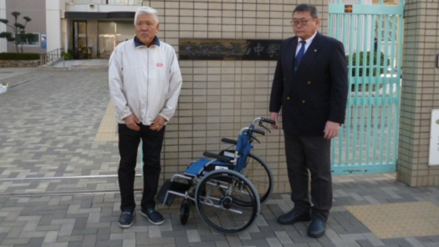 西区にある株式会社アサヒオオツカ様より、車いす1台を寄贈いただきました。プルタブを集めたポイントで西区の小中学校に車いすを寄贈する活動を長年続けておられるそうです。今回西中学校にいただいた車いすは第430台目とのことです。