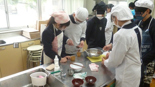 2-1は、家庭科の調理実習で班で協力してチョコブラウニーを作っています。