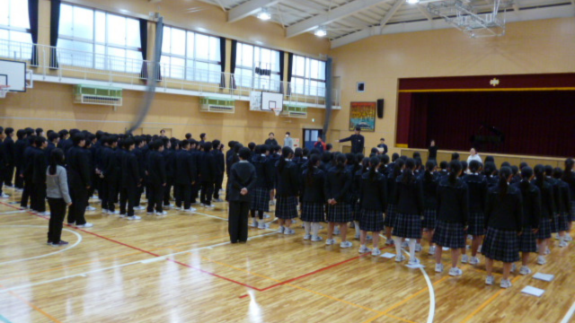 週末に行う「3年生を送る会」に向けて、1・2年生合同で練習を行っています。