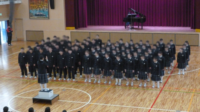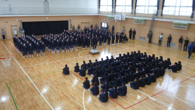 13日(金)の卒業式を1週間後に控えた今日、生徒たちで3年生の卒業を祝い別れを惜しむ「3年生を送る会」を行いました。新しい体育館で行った送る会は、より一層3年生の奏でるハーモニーを素敵なものにしていました。1・2年生もこの日のために練習してきた歌を3年生に披露して別れを惜しみました。