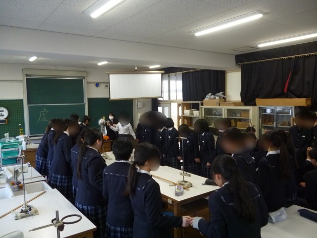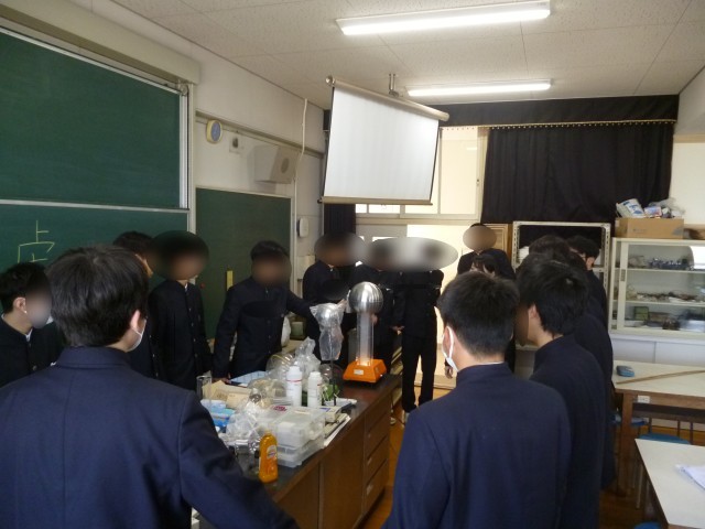 卒業前の最後の授業は、クラス合同で実験を行いました。