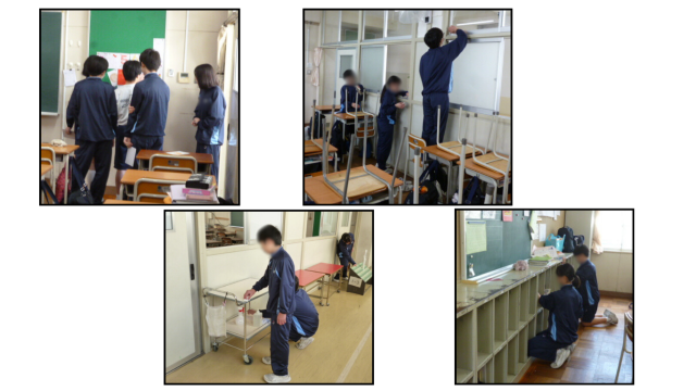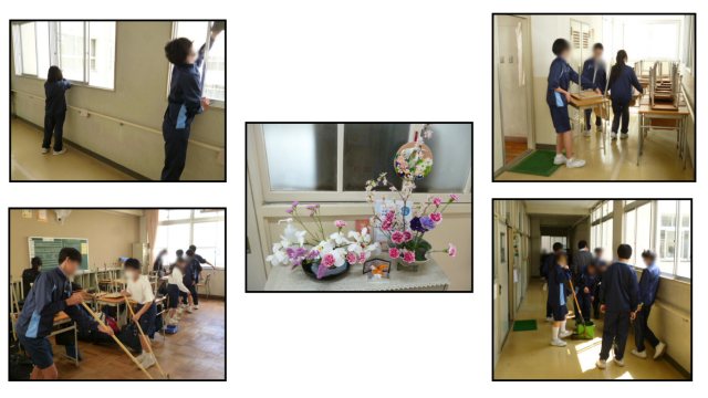 修了式を明日に控え、これまで使った校舎の隅々まで生徒たちがきれいに掃除をしています。