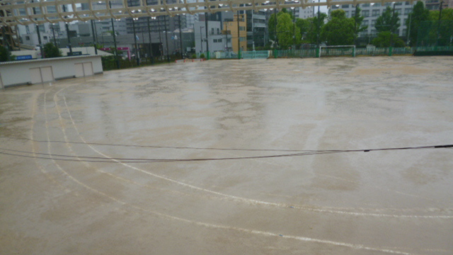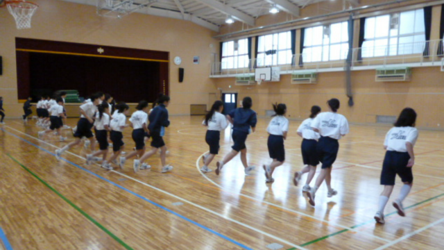 外は風も激しく舞う大雨。けれども、新しい体育館は庇(ひさし)も広く、校舎から体育館までも傘をさす必要もなく、雨に濡れることもなくたどり着くことができます。また、体育館内部も体力調査で学年全員が一度にシャトル・ランを行うことができるくらい広々とした快適な空間です。こんな快適な空間で落ち着いて学校生活が送れるようにしてくださっている皆さんに守られていることに感謝して、いつもきれいな体育館であるように、これからも大切に使っていきたいですね。