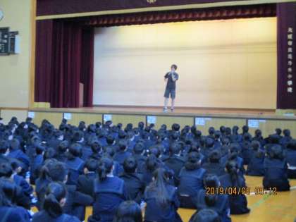 始業式の後、生徒指導主事より、新年度の新学期に向けて諸注意がありました。学校生活がきちんとできるように、楽しく過ごせるように約600人の生徒がより良い中学校生活ができるように、これからいろんな話をしていきます。