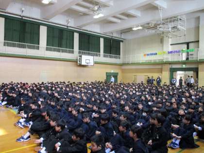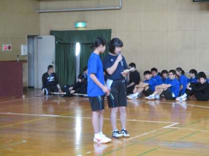 4月9日(火)5限目に全校生徒による部活動紹介を体育館にて行いました。司会進行は部活動代表の2人です。