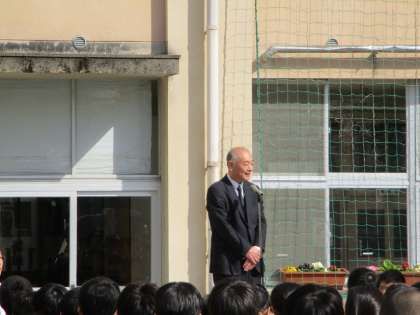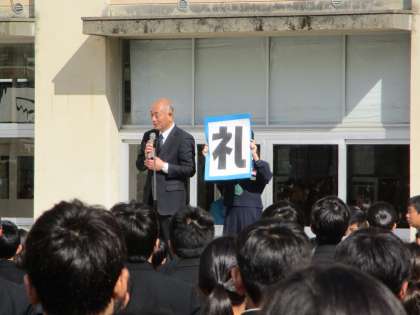 表彰後、校長先生より「学校は家庭と同じです。校内にも守って欲しいルールがあります。」「『 礼 』とは、挨拶をすることです。」「挨拶とは、人と人とをつなぐ、もっとも大切なことです。自分から挨拶しましょう。」など話がありました。