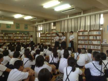 9月5日、5・6限に中学校見学会を昨日に引き続き行いました。今日は、西船場・明治小学校の6年生約100名が参加しました。生徒会役員による学校の説明では、質問が活発に飛び交いました。6年生のみなさん、花中のことはよくわかりましたか。来年4月の入学式で会うことを楽しみにしていますね。引率していただいた先生方、保護者のみなさん本日はありがとうございました。