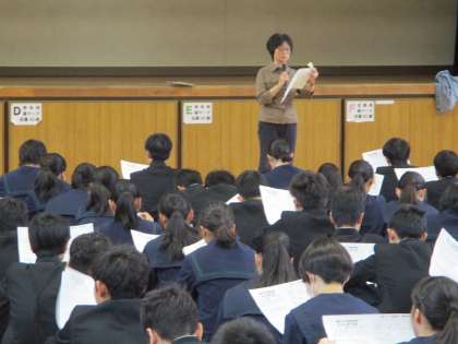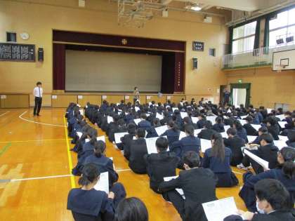 4月24日(水)3年生は、学級代表の司会進行で、学年集会を行い、進路担当より「体験入学・学校説明会の申し込みに関する注意」について説明がありました。