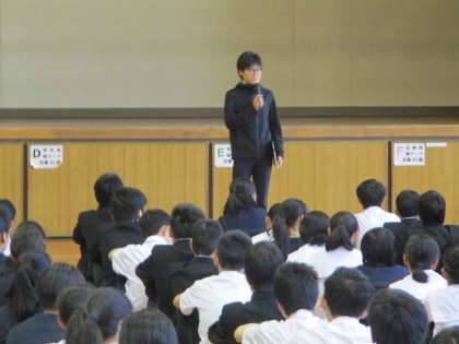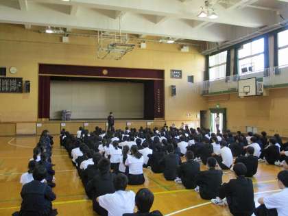 5月8日(水)3年生は、体育館で学年集会を行いました。3年担任の先生より、5月9日の実力テストと5月12日の「母の日」についての話がありました。