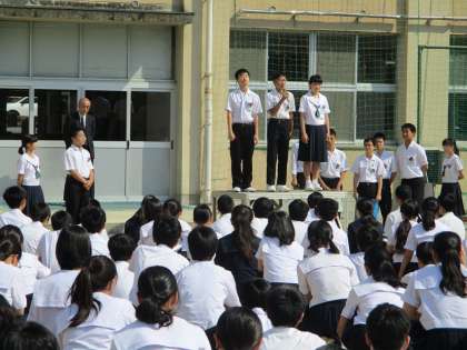 5月の大型連休明け最初の月曜日に設定された「いじめについて考える日」ついて、大阪市の学校で一斉に取り組みました。校長先生より、人類の進化の中でいじめが発生してきたこと、大津市のいじめによる自殺についてなどの話題にふれられ、「いじめをなくすためには、いろんな感性・理性を人としてあるべき姿を最大限に持つこと。」「相手を思いやる温かさ、大切にしなければいけない人権があります。」そして最後には「ちょっと暑い日が続き、身体には気を付けて、ともに一週間頑張りましょう。」と話をされました。