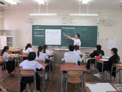 本日5月13日(月)は最終日なので1・2年生は5限目までの授業で下校し、6限目は、全学年の全先生方が3年生の授業参観を行いました。写真は数学の平方根の授業です。