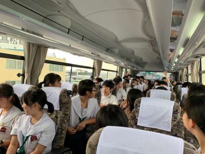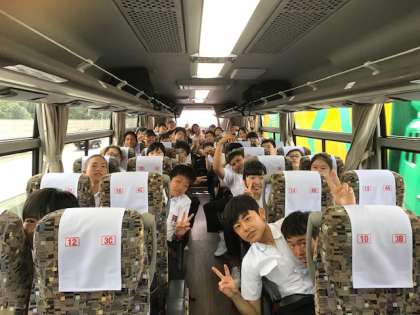出発したバス車内の様子です。それぞれのバスで、クラスごとにいろんな企画が考えれています。