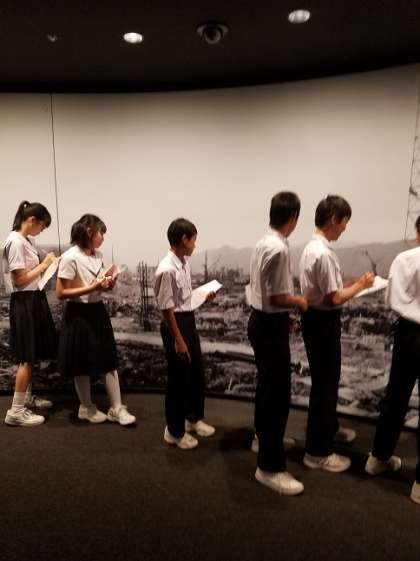 広島平和記念資料館で班ごとに見学し、必要なところは、しおり又はワークブックにメモを取ります。