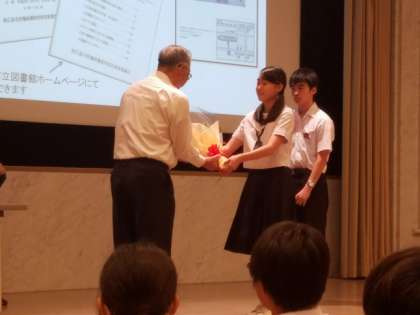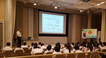 メモリアルホールにて、講師の御堂義之さんの被爆証言講話を聞きました。皆さん、しっかり学習しています。