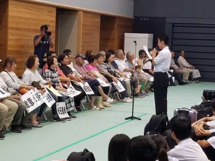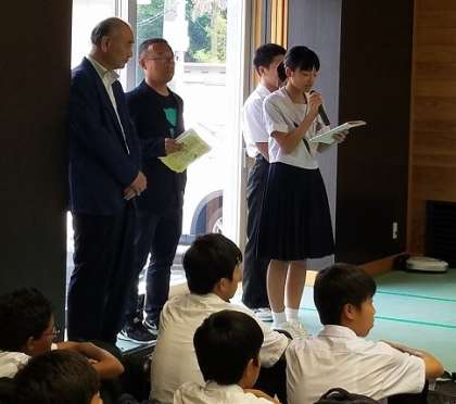防災センターにて、入島式を行いました。生徒代表挨拶、校長先生の挨拶、そして周防大島の方からの挨拶がありました。これから各班ごとに分かれて民泊になります。